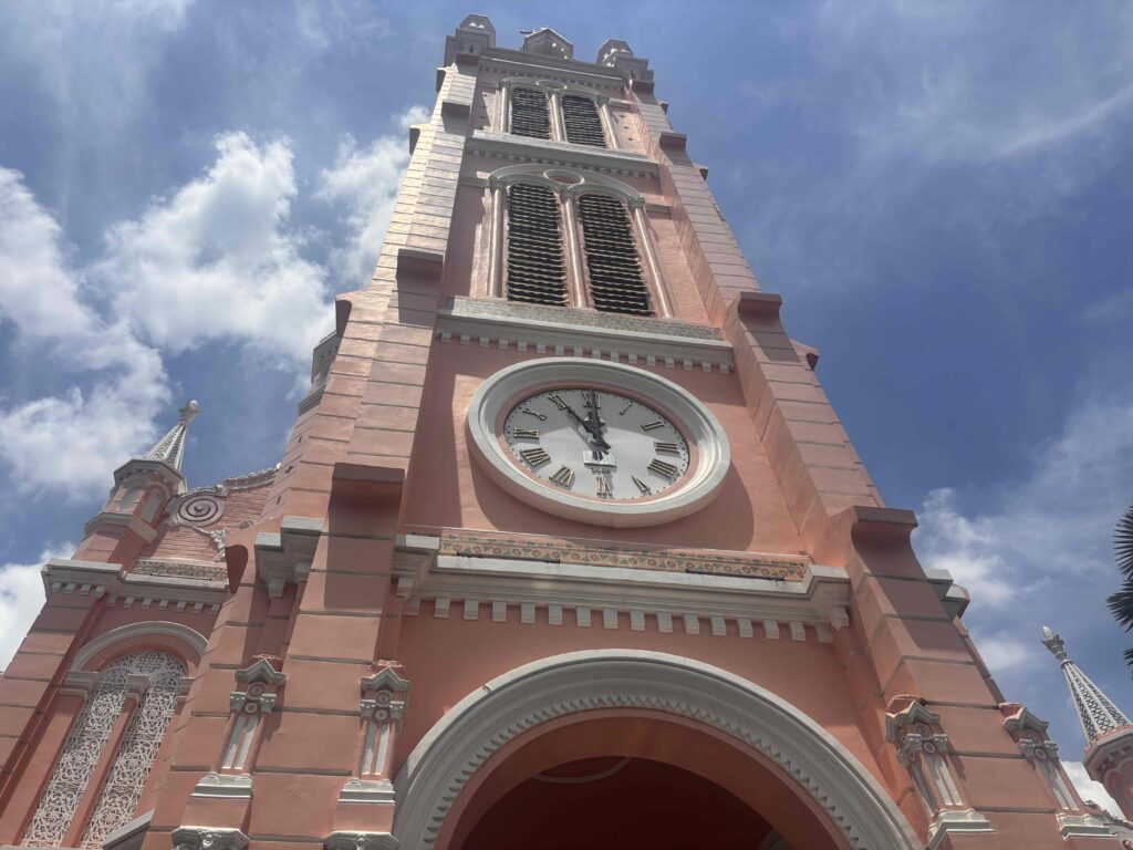 ひときわ目を引くピンク色の外観が特徴のタンディン教会。 ここはまさに「インスタ映え」の聖地で、アジア各国から訪れる観光客、特に女性グループの熱気がすごいです。