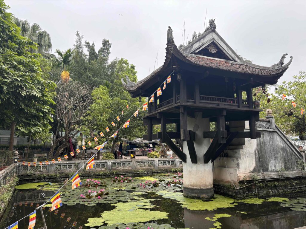 11世紀、李朝の皇帝によって建立された一柱寺(いっちゅうじ)。 その名の通り、池の中に立つ一本の石柱の上に仏堂が乗っているという、極めて特徴的な建築様式で知られています。皇帝が夢で観音菩薩から子供を授かった感謝として建てられたという、神秘的な伝承がある場所です。