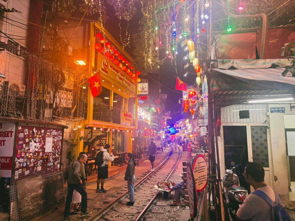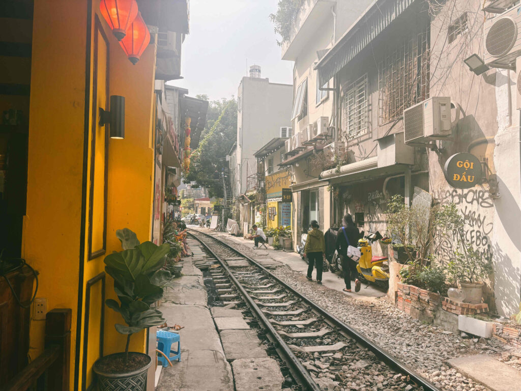 ハノイで最もエネルギッシュ、かつ「デンジャラス」な光景が見られるのがトレインストリートです。民家の軒先スレスレを巨大な列車が通り抜ける光景は、日本ではまずお目にかかれません。